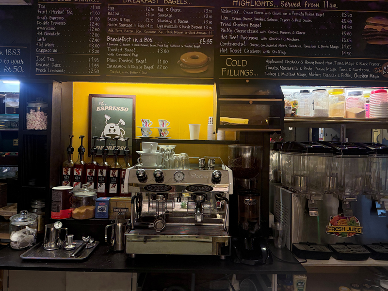 This is a genuine turnkey opportunity, with the sale including everything a prospective buyer needs to get going immediately. The comprehensive equipment list features a nearly new 2-group coffee machine with a professional coffee grinder, a 15-litre spiral dough mixer, oven, pasta boiler (used for boiling bagels), two griddles, a hot cabinet, a three-pot Bain Marie, a chilled cold display counter, fridge freezer, and a drinks display fridge. The shop is fully stocked with ambient bakery ingredients.