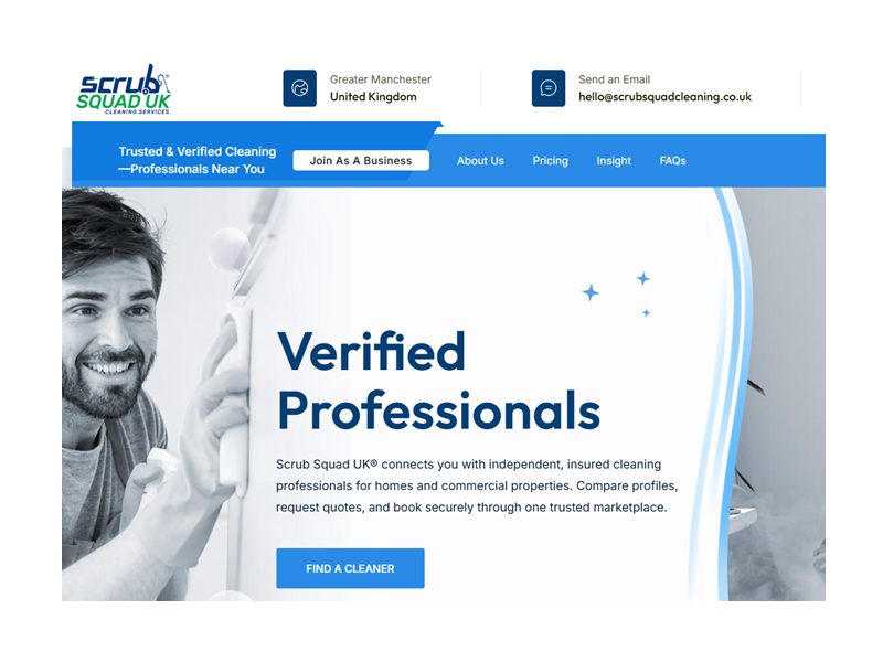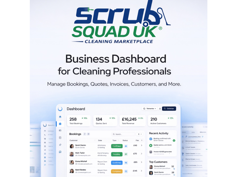 Please quote reference B09439CoGoGo proudly presents to the market Scrub Squad Cleaning, a modern digital cleaning platform designed to connect customers with cleaning professionals through a streamlined online marketplace.