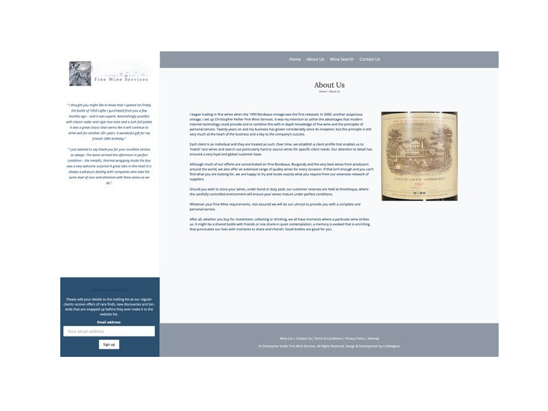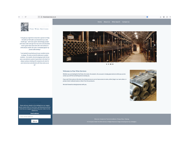 Currently run from the owner's home, the business is entirely relocatable. Wine stock is held in a bonded warehouse near London, which also handles all logistics and dispatching.