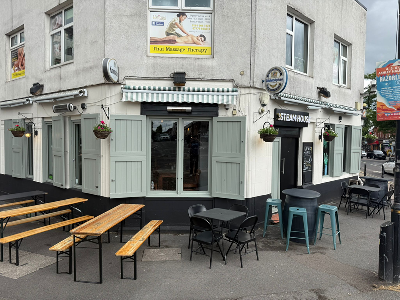 The Steamhouse is located on Northenden Road in Sale, Greater Manchester.