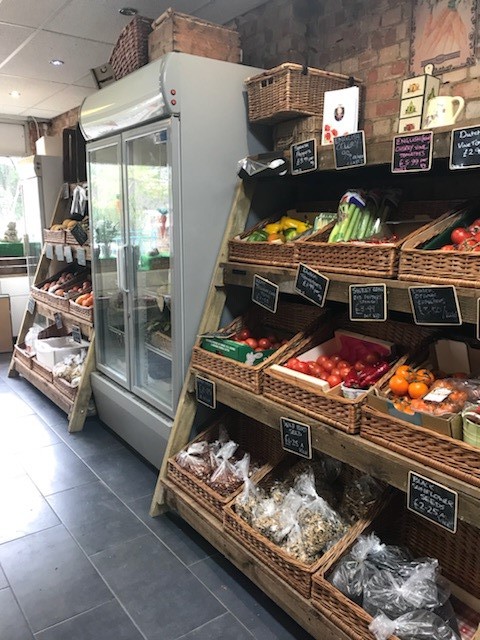 The entrance is on the right-hand side, this leads into the well-stocked retail space.In the shop is shelving and refrigerators.
